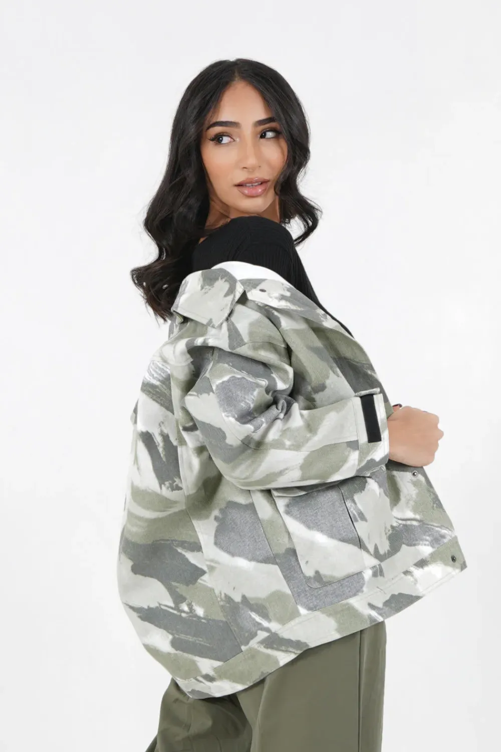 Femme Sixth June Manteaux | Veste Camouflage Oversize Vert Kaki