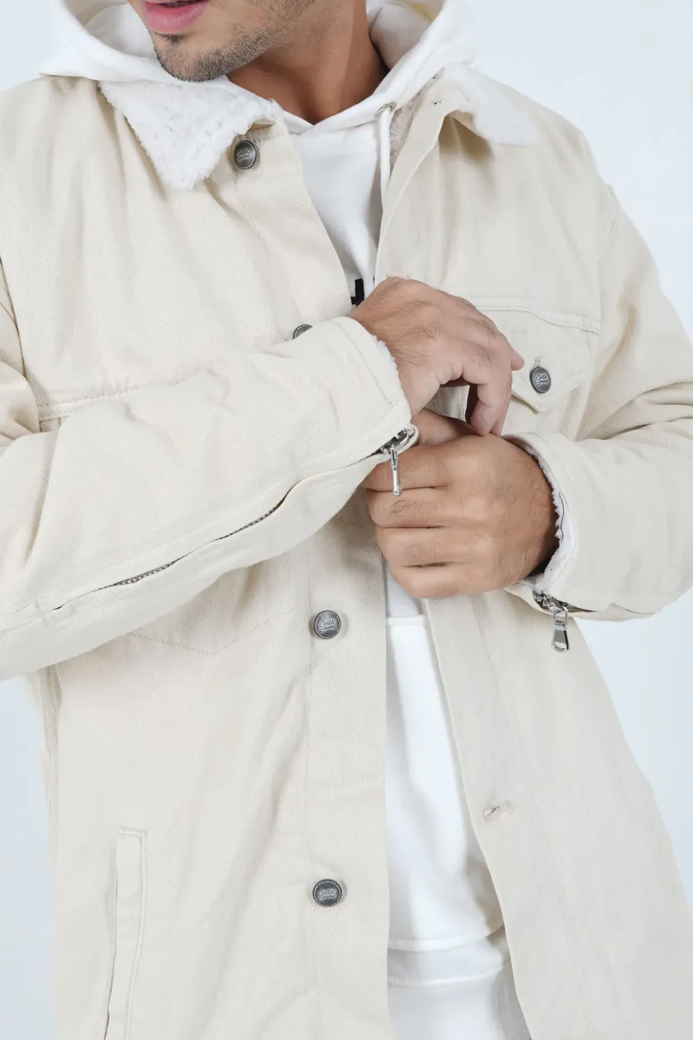 Homme Sixth June Manteaux | Veste Longue Jean Doublee Beige