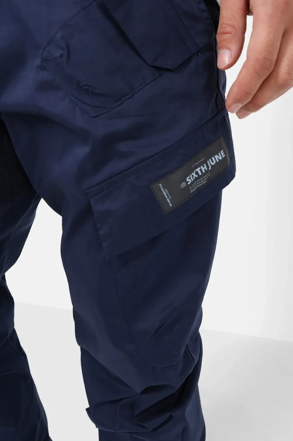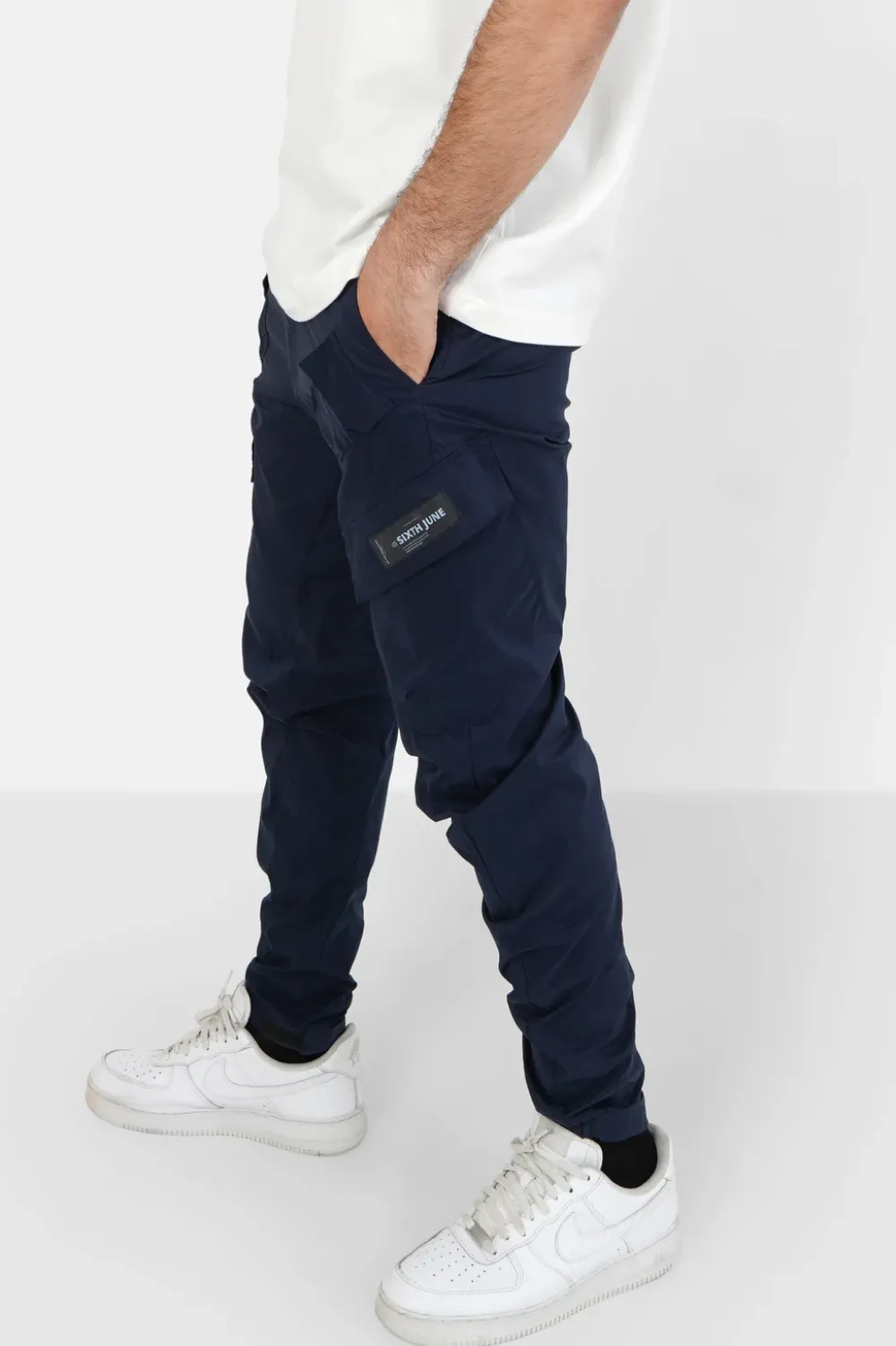 Pantalon Cargo Pour Homme De Marque Sixth June. Multi-Poches Plaquees A L’Avant Avec Rabats. Taille Elastique Avec Fermeture A Bouton Et Cordon De Serrage, Pattes De Serrage Aux Chevilles, Fausse Poche A L’Arriere, Matiere Legere Et Effet Nylon (Lisse Et Legerement Satinee). Coupe Classique. Composition: Coton (64.6%)